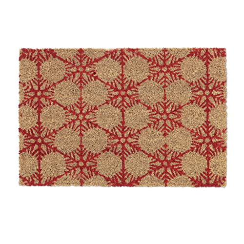 Relaxdays Zerbino in Fibra di Cocco, Tappetino Ingresso con Fiocchi di Neve, Interni e Esterni, 60x40 cm, Naturale Rosso
