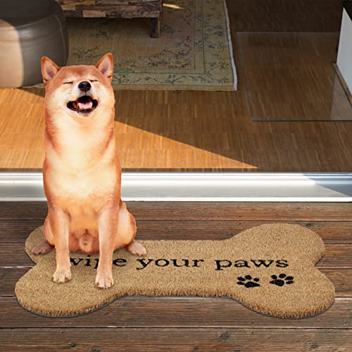 Relaxdays Zerbino a Forma d'Osso, Fibra di Cocco, Wipe Your Paws, Interni ed Esterni, 40 x 70 cm, Antiscivolo, Naturale, polivinilcloruro, 1 pz