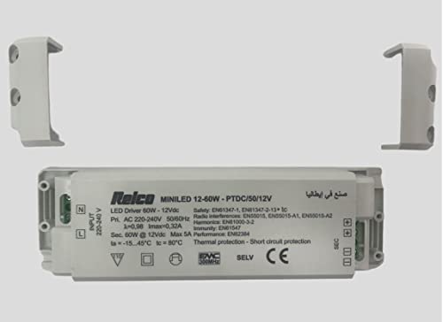 Relco PTDC/50/12V LED trasformatore 12V 60 W, trasformatore elettronico a LED, 5 A, 230 V su 12 V DC, trasformatore a bassa tensione, alimentatore a LED a tensione costante