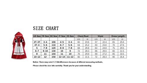 ReliBeauty Rosso Costume Bambina Vestito con Mantello Cesto,10-11 anni