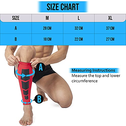 360 RELIEF Maniche a compressione per polpaccio - per sport fitness,Stecche per stinchi, crampi muscolari strappati, allenamento, circolazione, grande, rosso con borsa per la biancheria in rete