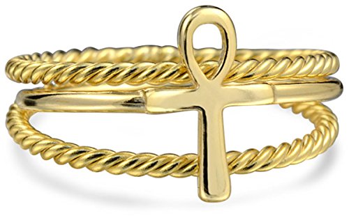 BELLISSIMO DESIGN - Esprimi il tuo stile personale e festeggia la vita con questo sorprendente anello midi placcato oro 925 argento, set di tre anelli midi. Evidenziato da un toccante motivo Ankh Cross, un simbolo egiziano della vita, completato da anelli intrecciati e in stile intrecciato.