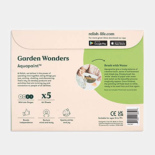 Relish Aquapaint 'Garden Wonders' Pack of 5 Designs Reusable Water Painting Art Activity for Alzheimer's/Dementia