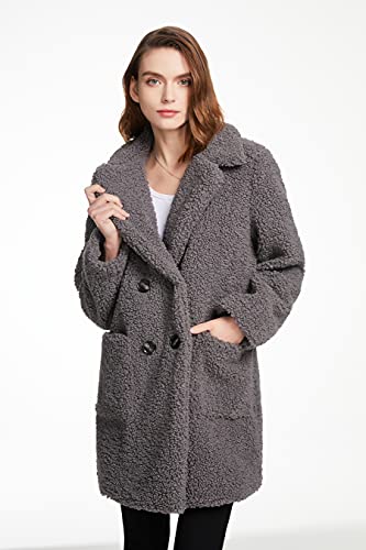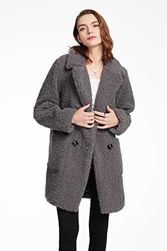 Relish Noless Cappotto Donna Pelliccia Sintetica Giacca Lunga Donna Pelliccia Finta Ecopelliccia Soffice Oversize Giacca Doppio Petto Cappotto-S Causale