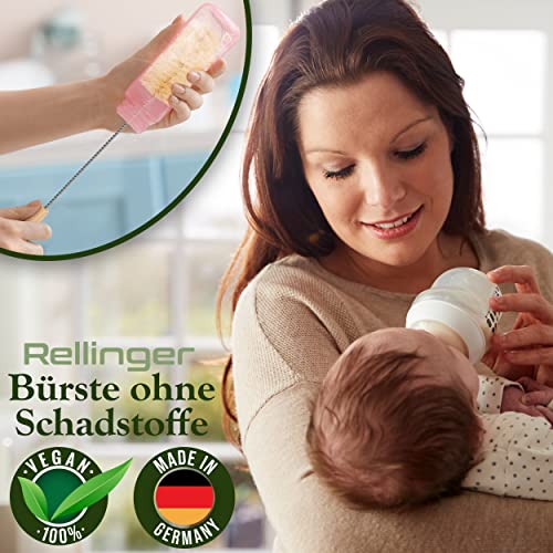 Rellinger XXL Set di 2 spazzole per bottiglie - spazzole per bottiglie insapore con setole in fibra vegana - spazzola per bottiglie con manico in legno di faggio FSC - detergente per bottiglie