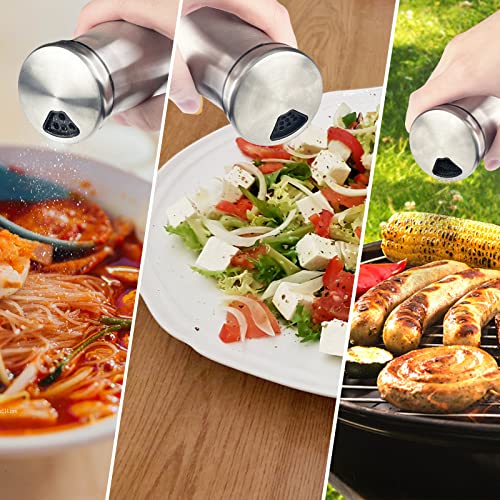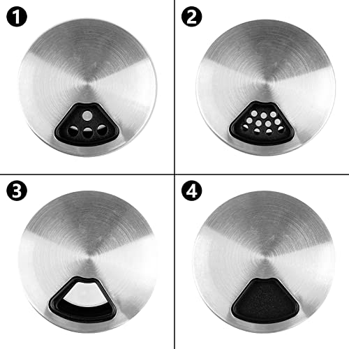 【Multi-calibro】 Il barattolo delle spezie ha un grosso calibro, che è comodo per confezionare i condimenti. Il coperchio in acciaio inossidabile ha fori di tre diversi calibri, che è facile controllare l'uscita