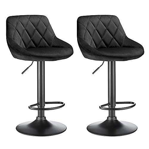 RELOVE 2X Sgabelli da Bar con Schienale Sedia Imbottita Regolabile in Altezza Lift Gas Tessuto Velluto,Coppia Sgabelli Bar Vintage Alto In Metallo,strumento da cucina per bar-Flanella - (nero)