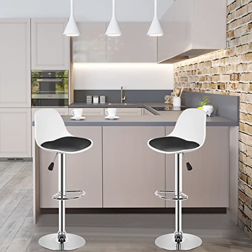 RELOVE Sgabello da Bar Moderno Sgabello Alto con Schienale in Simipelle Sedia Alta da Cucina Regolabile Girevole (PU (bianco + nero) -8 pz) (JB207860)