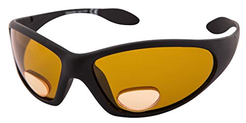 Remaldi Occhiali da pesca polarizzati UV400 Bifocal Wrap Around Forza +2.50 Angling Eyes - Montatura Nera Lente Ambra Categoria 2