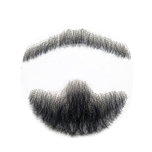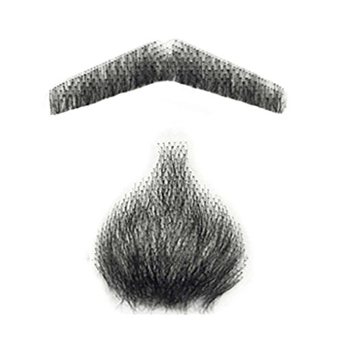 Remeehi - Baffi e pizzetto finti, da uomo, con pizzo, di veri capelli umani, ideali per costumi