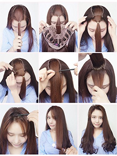 Remeehi - Parrucca a forma di U, capelli sintetici lunghi e lisci, con ganci a 3/4