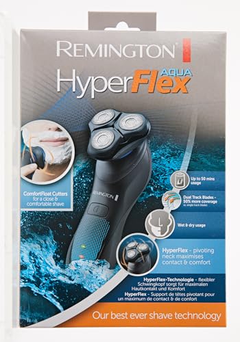 Remington Rasoio elettrico Barba - Utilizzo su asciutto e bagnato - Rasoio a Testine Rotanti flessibili, nero/blu, Rasoio a Testine rotanti HyperFlex Aqua XR1430