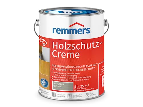 Remmers Crema di protezione del legno grigio argento, 5 litri, protettivo professionale per legno in forma cremosa, vernice trasparente decorativa premium per esterno