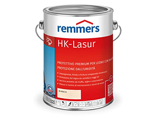 Remmers Vernice trasparente HK bianco, 2,5 litri, vernice trasparente decorativa premium per esterni, tripla protezione del legno con impregnante + fondo + finitura, protezione del legno da umidità e raggi