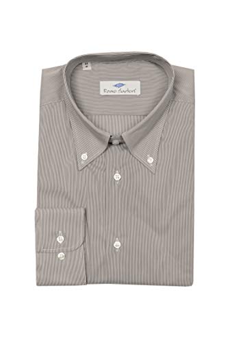Remo Sartori - Camicia Uomo Button Down a Righe, vestibilità Regolare, Maniche Lunghe, Made in Italy (Grigio, 40-15 ¾)