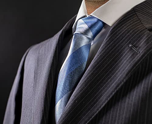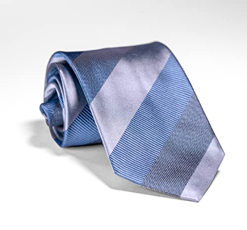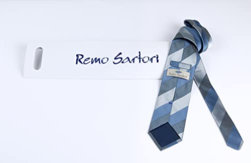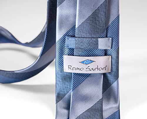Remo Sartori - Cravatta in Pura Seta Regimental a Righe Larghe Azzurra, Made in Italy, Uomo