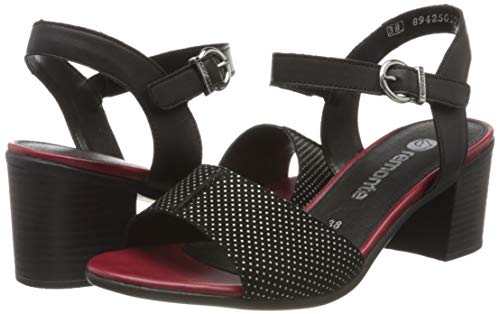 Remonte D2152, Sandali con Cinturino alla Caviglia Donna, Nero (Schwarz/Silber/Schwarz 02), 36 EU