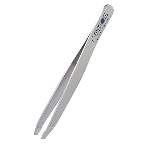 Remos - pinzette per le sopracciglia in acciaio inox satinato - punta obliqua - 9 cm