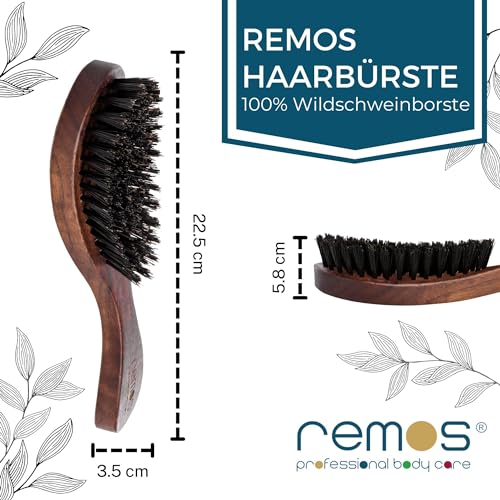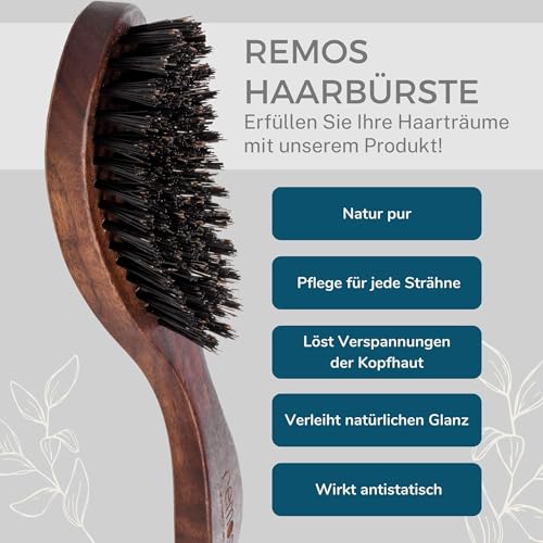 REMOS - Spazzola per capelli in legno di noce al 100% con setole di cinghiale larghe