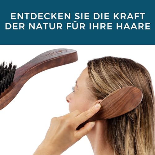 La migliore cura dei capelli: la pura setola di cinghiale è in grado di preservare la struttura naturale del capello, rinvigorisce il cuoio capelluto, previene la caduta dei capelli e distribuisce il proprio grasso alle aree dei capelli secchi.
