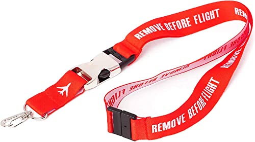 REMOVE BEFORE FLIGHT Cordino con apribottiglie in metallo cromato (diciassetta) | Rosso | Carattere bianco | Commerciante IT