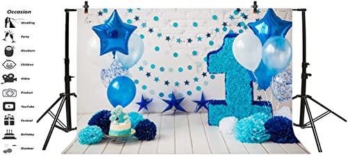 Renaiss 1.5x1m Bambini 1 ° compleanno Foto Sfondo Fiori di carta Palloncini blu Pavimento in legno Fondale fotografico Ragazza Ragazzo Bambino Un anno Decorazione per feste Puntelli in studio
