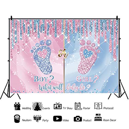 Renaiss 1.5x1.2m Gender Reveal Sfondo Rosa Blu Ragazza o ragazzo Fotografia Sfondo per Baby Shower Decorazioni per feste di compleanno Torta neonato Banner da tavolo Vinile Photo Booth Puntelli