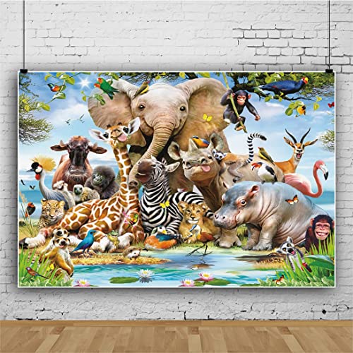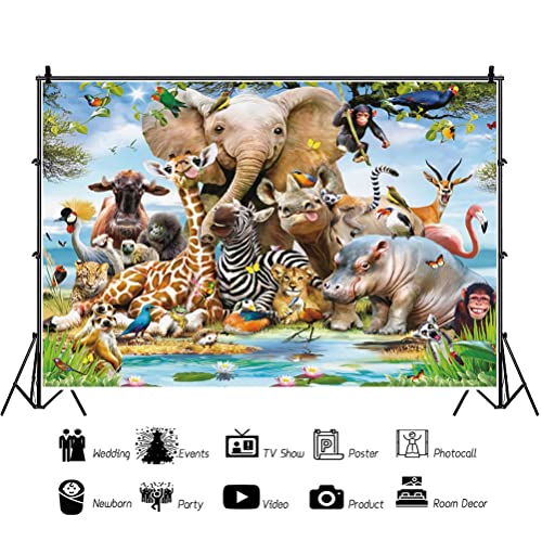 Renaiss 2.5x1.8m Sfondo di animali della giungla Foresta pluviale tropicale Safari Fotografia di animali Sfondo Ragazzi Bambini Forniture e decorazioni per feste di compleanno Puntelli per Photo Booth
