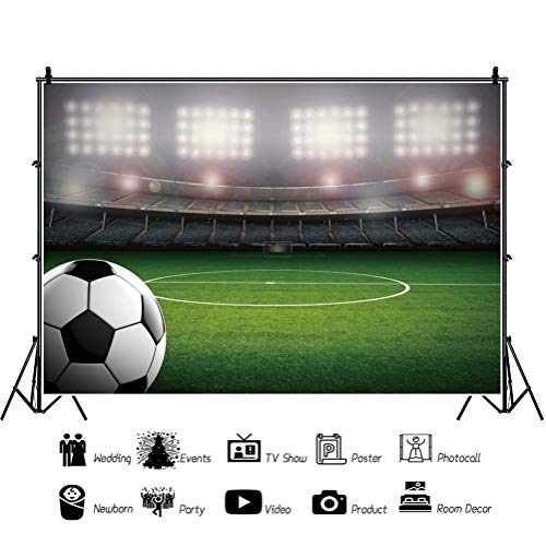 Renaiss 2.2x1.5m Sfondo di campo da gioco di calcio Campo da calcio Stadio Riflettore Erba verde Fotografia Sfondo per bambini Partita di calcio Ragazzo Decorazione per feste Puntelli per foto