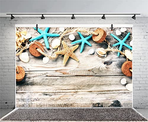 Renaiss 2.2x1.5m Tema marino Tavola di legno Sfondo nautico Mare Stella marina Conchiglia Conchiglie di cozze Fotografia Sfondo Sailor Kid Ritratto di bambino Decorazioni per feste Puntelli in studio