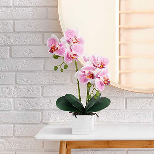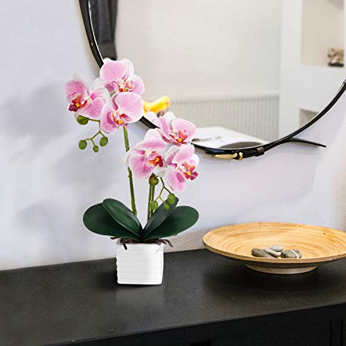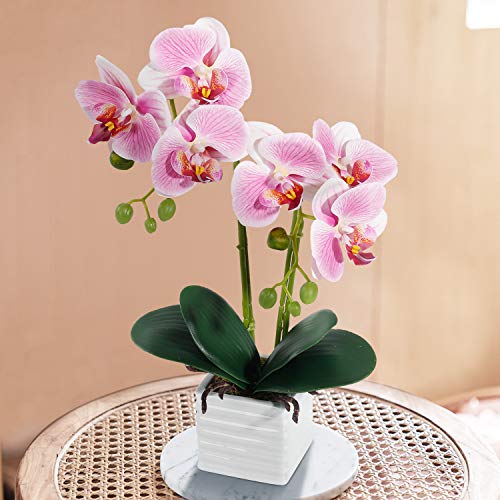 RENATUHOM - Pianta di orchidee artificiali con fiori artificiali rosa orchidea con vasi in porcellana, orchidee di seta, piante per decorazione della casa centrotavola per tavolo da pranzo
