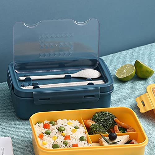 Rendeyuan Lunch Box Bento Box Riscaldamento a microonde Contenitore per Il Pranzo Contenitore per Alimenti 3 Scomparti con Cucchiaio e Bacchette - 3 Colori opzionali - 6.5x13.5x20.5cm