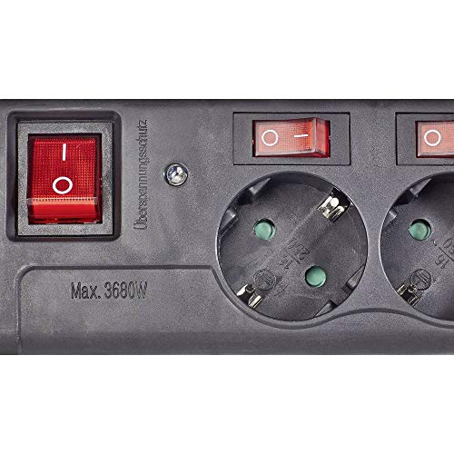 Renkforce 615B-CMB-S Multipresa con Protezione da sovratensioni 6 Scomparti Nero Schuko 1 pz.