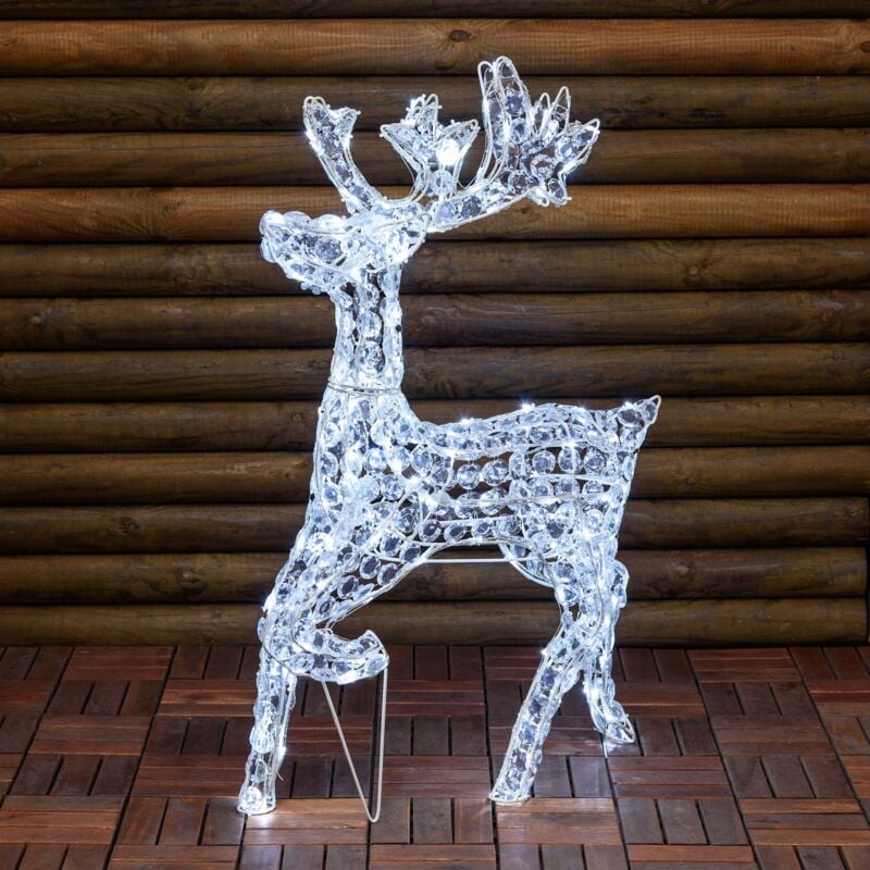 A Natale i preparativi degli interni sono fondamentali ma non puoi trascurare la decorazione del tuo giardino o balcone. I decori esterni fanno della tua casa un luogo fiabesco e incantevole. Per ricreare questa magica atmosfera hai bisogno di catene di luci e figure luminose come questa renna galoppante alta 85 centimetri. Grazie alla presenza di cristalli trasparenti la luminosità brillante dei led si riflette creando un elegante effetto luminoso. La renna si compone di una struttura in metallo rivestita di cristalli acrilici che riflettono la luce emessa da 200 led a luce fissa. La decorazione è facile e pratica da installare e consuma fino al 90% in meno rispetto ad un'equivalente decorazione ad incandescenza. Il cavo di alimentazione lungo 4 metri ti permette grande libertà di movimento nell'allestimento di vetrine natalizie. Se non hai molto tempo ma vuoi far brillare i tuoi prodotti e attirare gli sguardi dei passanti una renna è la scelta giusta per te. Dettagli Renna