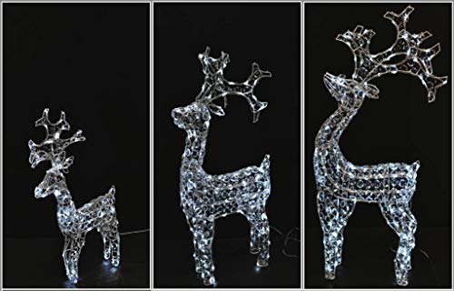 Renna Di Natale Luminosa con Diamanti Cristalli Brillanti Led Bianco Ghiaccio per Esterno Luci Fisse + Flashing IP44 CE (66 cm - 80 LED)
