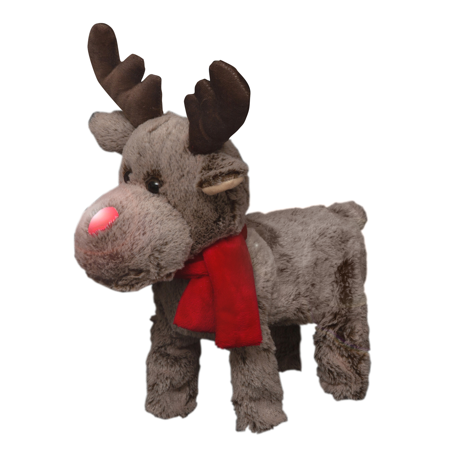 Un morbido pupazzo per rendere le feste di Natale ancora più magiche per i piccoli di casa. La buffa renna completa di sciarpa non è un semplice peluche: inserendo le pile infatti si muove, emette musica e si illumina! La sensazione sarà quella di avere in casa una creatura quasi reale, davvero simpatica. Funziona con 2 batterie AA incluse. Emette un solo colore led. Dimensioni: 40x29x20 cm.
