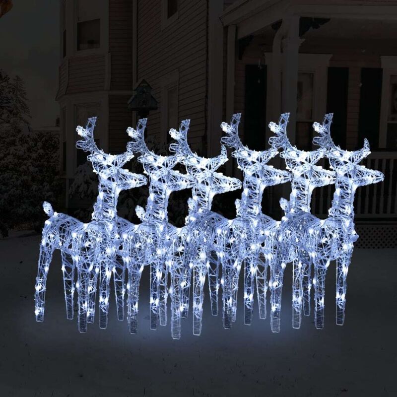 Create una bellissima esposizione nel vostro giardino durante le festivit natalizie con queste adorabili renne di Natale luminose. Materiale resistenze agli agenti atmosferici: Realizzata in acrilico, questa decorazione di Natale perfettamente resistente agli agenti atmosferici della stagione invernale. LED a risparmio energetico: Ciascuna renna luminosa dotata di 40 luci LED, a basso consumo energetico e di lunga durata. Diversi effetti luminosi: La renna luminosa realizzata con 8 diversi effetti di luce: una combinazione di tutti gli effetti, bagliore lento, scintillio/flash, onde di luce, scorrevole, sequenziale, luce fissa e dissolvenza lenta. Nota: Se utilizzare il prodotto all'aperto, assicuratevi che la connessione USB sia collegata al chiuso in un ambiente asciutto. Ciascun prodotto viene fornito con un manuale di assemblaggio nella confezione per un facile montaggio. Colore della luce: Bianco freddo Materiale: Acrilico Dimensioni di ciascuna renna: 18 x 8,5 x 55 cm (L x P x