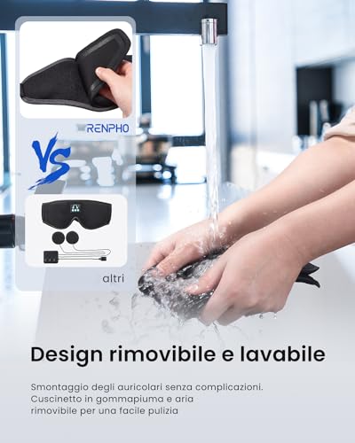 RENPHO Maschera per il sonno con cuffie per il sonno Bluetooth V5.2, Maschera per il sonno 3D Morbida per chi dorme di lato, maschera per gli occhi per il comfort notturno, rumore bianco