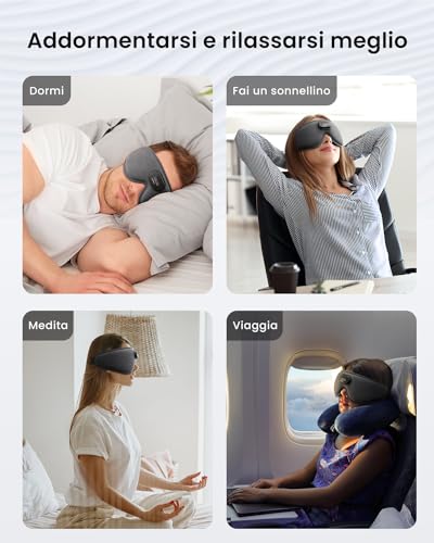 【100% Light Blocking】maschera per gli occhi per dormire con presa 3D, imbottitura in memory foam ultra morbida progettata per adattarsi perfettamente al viso e bloccare luci e rumori, che offre un'esperienza di sonno sano e ininterrotto per aiutare a ridurre gli occhi secchi, le occhiaie e le borse.