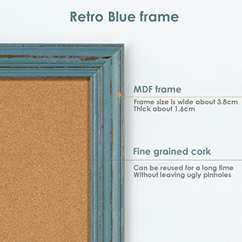 RENRUIRUI Bacheca in Sughero con Combinazione di Lavagna Piccola, 30X40CM, Bacheca con Cornice retrò A Parete,per Dormitorio Dell'ufficio della Scuola Domestica(Color:Blu)