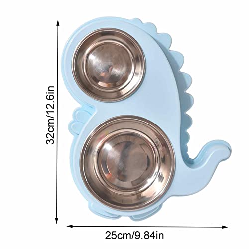 Renywosi Ciotola doppia per cani, ciotole doppie 2 in 1, per cani, stazione di alimentazione lenta a forma di dinosauro per animali domestici, mangiatoia per animali domestici con dispenser