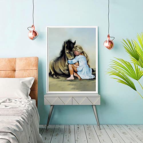 Reofrey 5D Diamond Painting Pittura Diamante Cavallo Bambina 5D Fai da Te Diamond Painting Trapano CompletoArtigianato Decorazione per Casa e Pareti 30x40cm