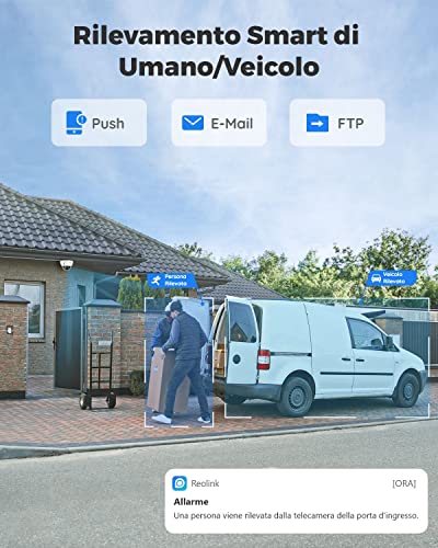 【Rilevamento Intelligente e Preciso】Il rilevamento di persona/veicolo basato su algoritmi all'avanguardia aiuta a identificare le vere minacce e a inviare notifiche in base ai tipi di movimento. Puoi anche impostare aree di rilevamento e sensibilità per area di sorveglianza per migliorare la precisione.