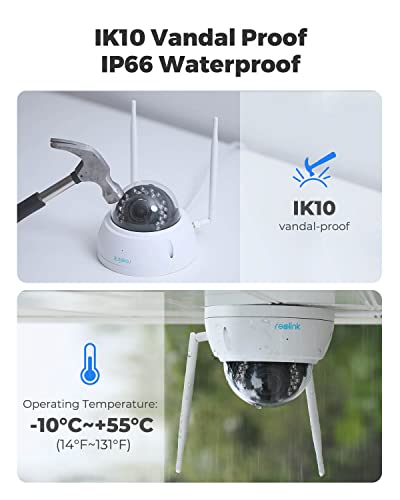 CONFIGURAZIONE FACILE: Con una facile configurazione wifi e senza fili disordinati, la telecamera WiFi ti offrirà un'esperienza plug-and-play. Puoi configurarla tramite l'app/client Reolink. Inoltre, può essere installata all'interno e all'esterno grazie al suo design impermeabile