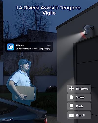 ZONA DI MOVIMENTO E AVVISI PERSONALIZZABILI: Con la zona di movimento e la programmazione, puoi scegliere aree e periodi specifici che desideri che la tua telecamera di sicurezza monitori, godendo dei vantaggi offerti dall'intelligenza. Quando vengono rilevate persone o veicoli, gli avvisi ti verranno inviati istantaneamente e in modo automatico.