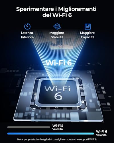 Wi-Fi 6: Basato sullo standard IEEE 802.11ax e sullo standard di sicurezza Wi-Fi WPA3-PSK, il Wi-Fi 6 offre la sicurezza, l'efficienza, la copertura e le prestazioni richieste dagli utenti di oggi. Con una capacità 4 volte superiore, questa nuova generazione può ospitare più dispositivi