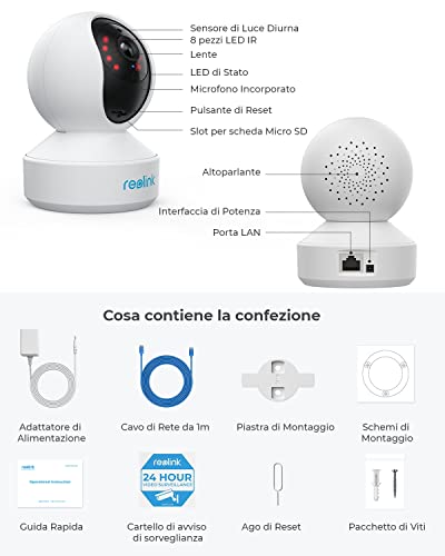 Reolink 2K Telecamera WiFi Interno, Cam IP con Pan & Tilt Protezione a 360°, 2.4/5GHz Dual-Band WiFi, Audio a Due Vie, Rilevazione di Persone/Pet, Auto-tracking, Baby Monitor, E1 Pro (Pack di 2)