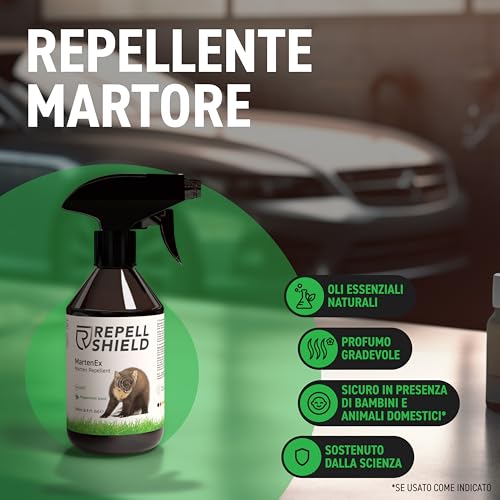 RepellShield Spray Repellente per Topi e Martore, 250ml - Alternativa a Ultrasuoni per Topi Auto - Spray Dissuasore per Topi da Soffitta, Cantina, Giardino - Protegge i Cavi dell'Auto dalle Martore