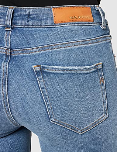 Replay Faaby Broken Edge Jeans, 009 Blu Medio, 26W / 30L Donna