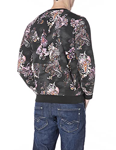 Replay M3548 .000.73528 Maglia di Tuta, 010 Nero/Naturale/Arancione/Viola, L Uomo